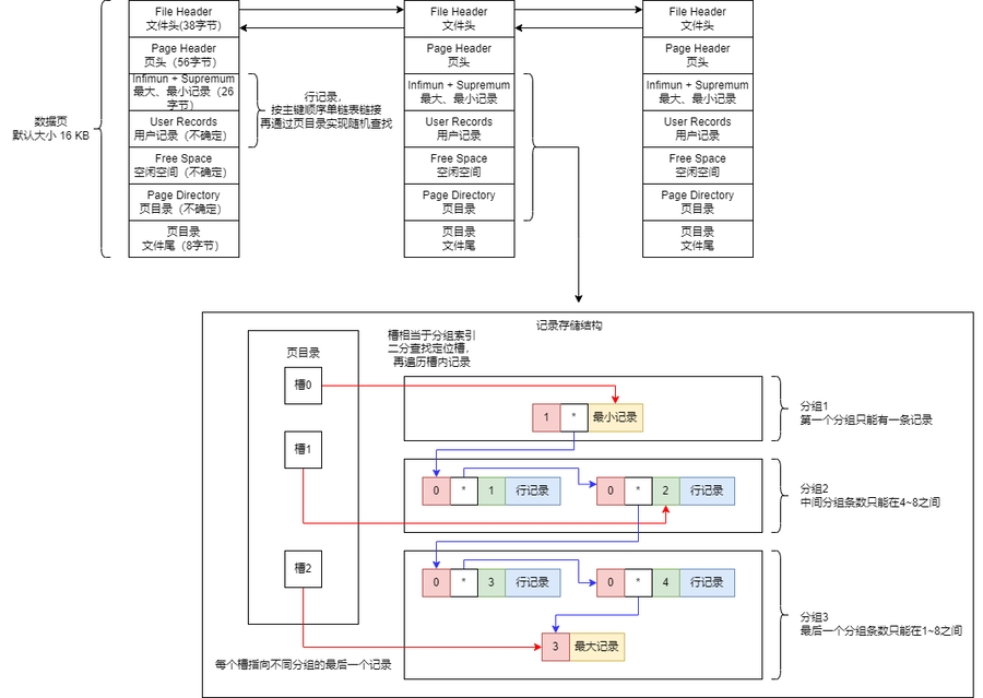 日志类型,表空间ID,数据页号,数据页偏移量,具体修改的数据。使用二阶段提交保证两份日志逻辑一致。当有日志要写入时,先写到redo log buffer后状态是prepare,开始写bin log cache,bin log 写完后,事务提交,redo log 改为commit状态,redo log写完,此时事务就算完成;这里描述的写redo log和bin log都只写在了缓冲区,何时写进磁盘,是根据