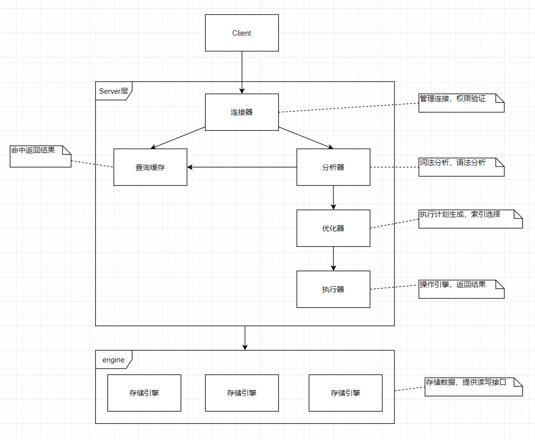 连接器:负责跟客户端建立连接、获取权限、维持和管理连接。登录进去后修改权限,默认是将在下一次登录后生效