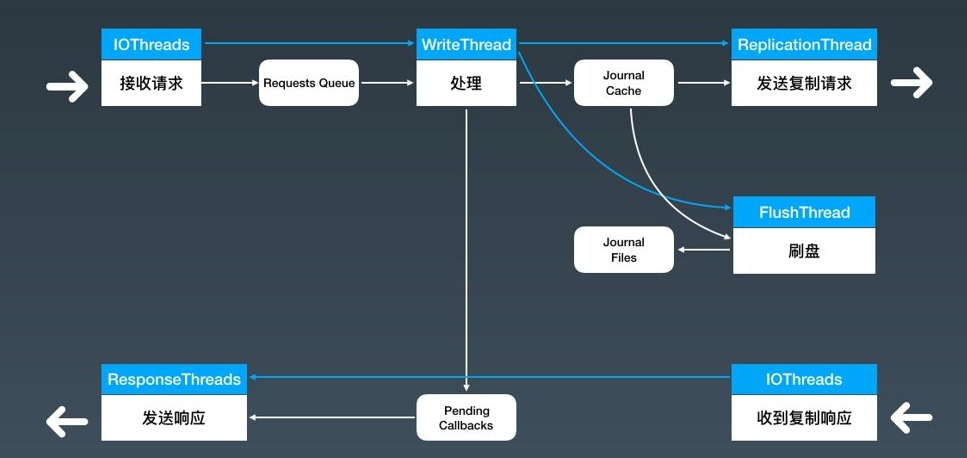 第一是使用异步设计,把刷盘和复制这两部分比较慢的操作从这个流程中分离出去异步执行;